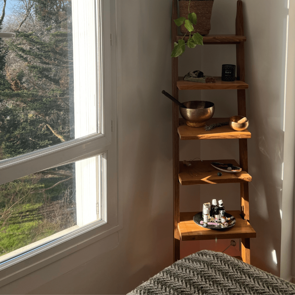 Pour enrichir ce moment de détente et maintenir ce lien précieux avec la nature, j’ai soigneusement choisi l’emplacement du cocon : niché dans un appartement qui offre une intimité chaleureuse et douce, avec une vue imprenable sur la nature.